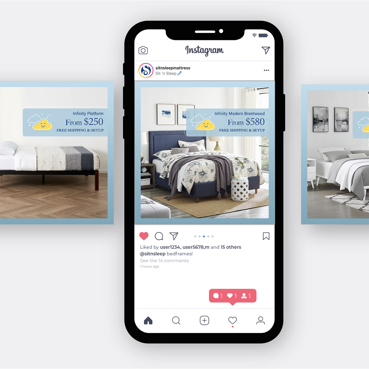 In Q4 2021, Wingman executed three paid social campaigns to help Sit ‘n Sleep expand product sales beyond traditional mattresses across its e-commerce and brick and mortar stores. These ad campaigns reached in-market audiences across Facebook and Instagram using animated videos and carousel ads.